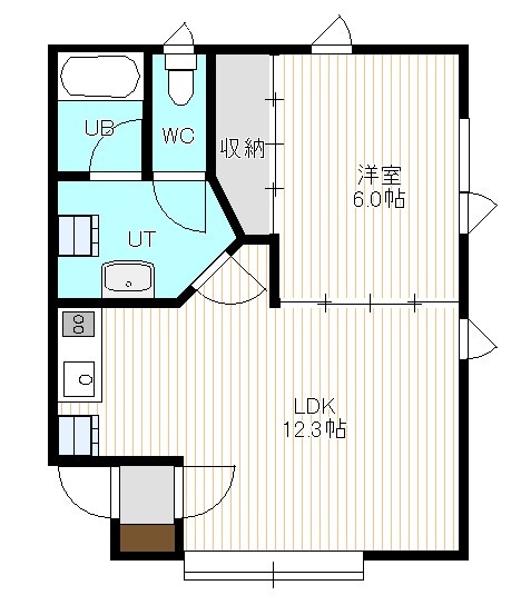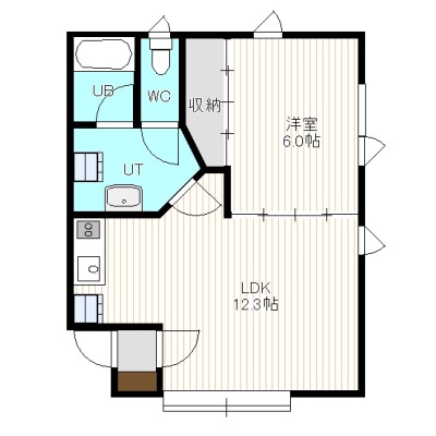 1LDK(43.38m²)└ 1階:LDK12.3帖 洋室6帖