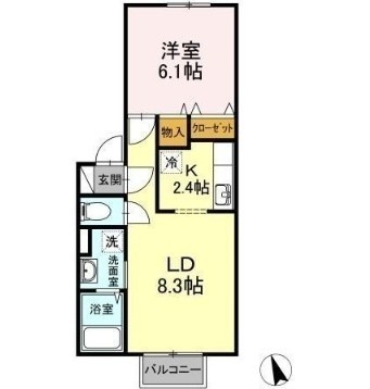 1LDK(43.78m²)└ 1階:LD8.3帖 K2.4帖 洋室6.1帖