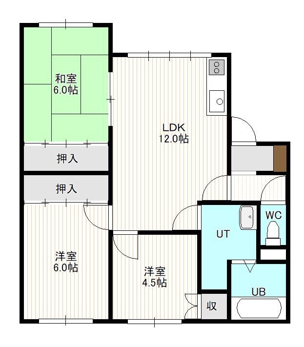 3LDK(65.06m²)└ 1階:LDK12帖 洋室6帖 和室6帖 洋室4.5帖