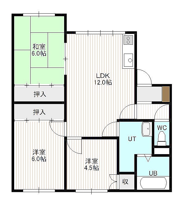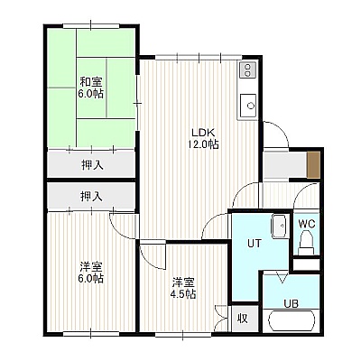 3LDK(65.06m²)└ 2階:LDK12帖 洋室6帖 和室4.5帖 和室6帖