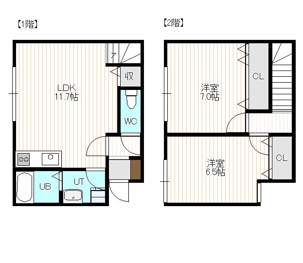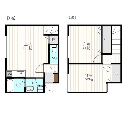 2LDK(61.15m²)└ 1階:LDK11.7帖 / 2階:洋室7帖 洋室6.5帖