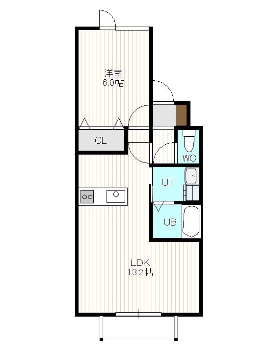 1LDK(45.13m²)└ 1階:LDK13.2帖 洋室6帖
