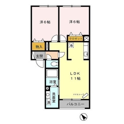 2LDK(55.07m²)└ 3階:LDK11帖 洋室6帖 洋室6帖