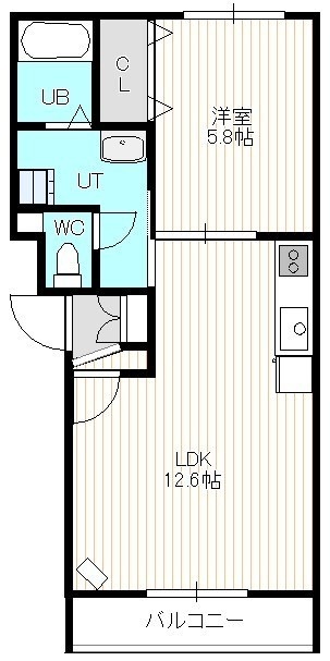 1LDK(41m²)└ 2階:LDK12.6帖 洋室5.8帖