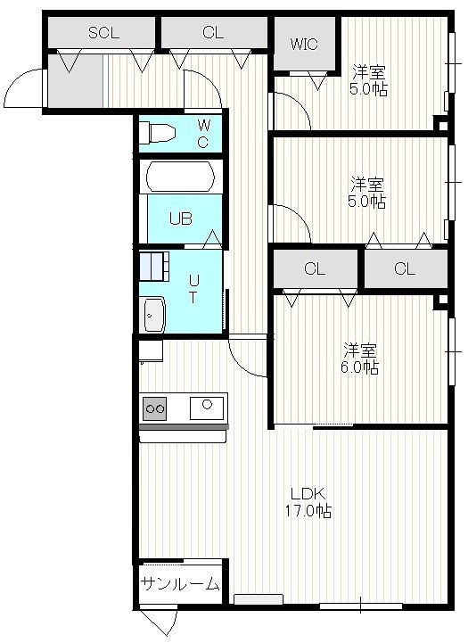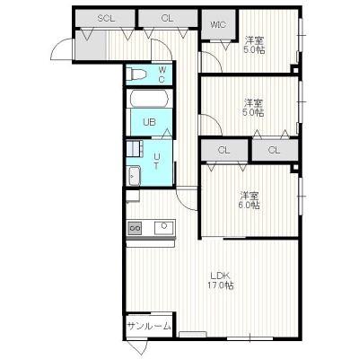3LDK(84.51m²)└ 3階:LDK17帖 洋室6帖 洋室5帖 洋室5帖