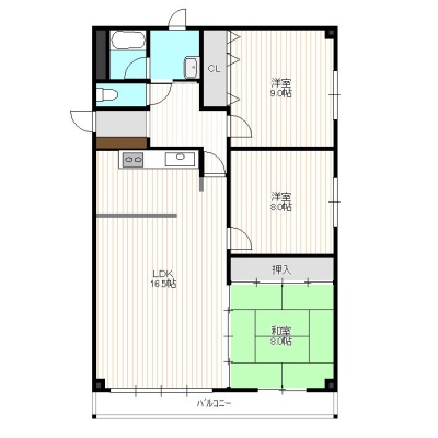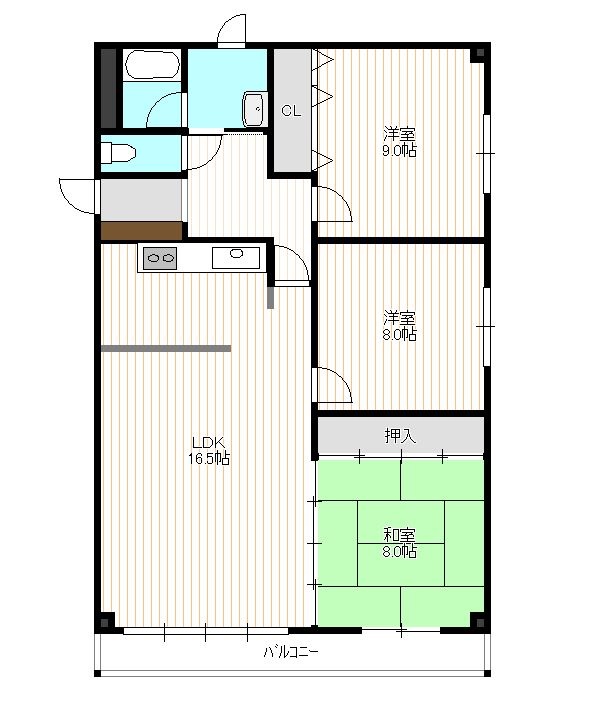 3LDK(87.52m²)└ 3階:LDK16.5帖 洋室9帖 和室8帖 洋室8帖