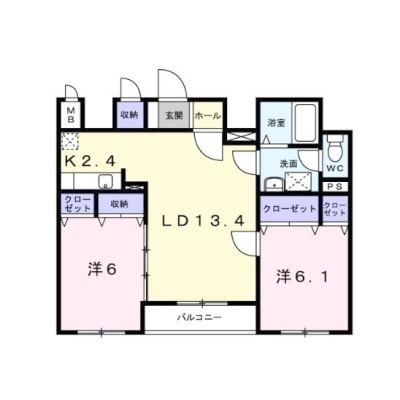 2LDK(62.47m²)└ 1階:LDK15.8帖 洋室6.1帖 洋室6帖