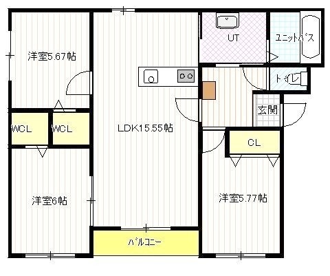 3LDK(73.31m²)└ 1階:LDK15.5帖 洋室6帖 洋室5.7帖 洋室5.6帖