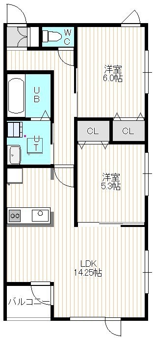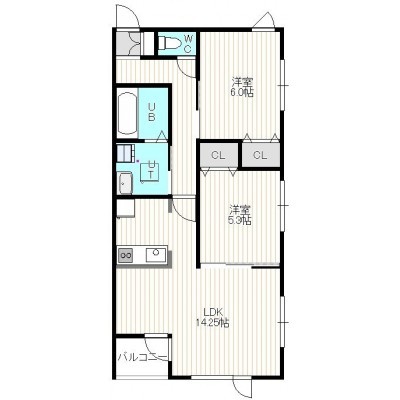 2LDK(50.22m²)└ 1階:LDK14.25帖 洋室6帖 洋室5.3帖