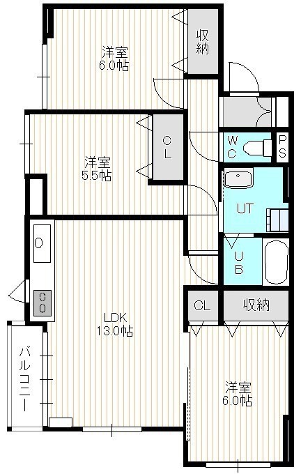 3LDK(68.04m²)└ 4階:LDK13帖 洋室6帖 洋室6帖 洋室5.5帖