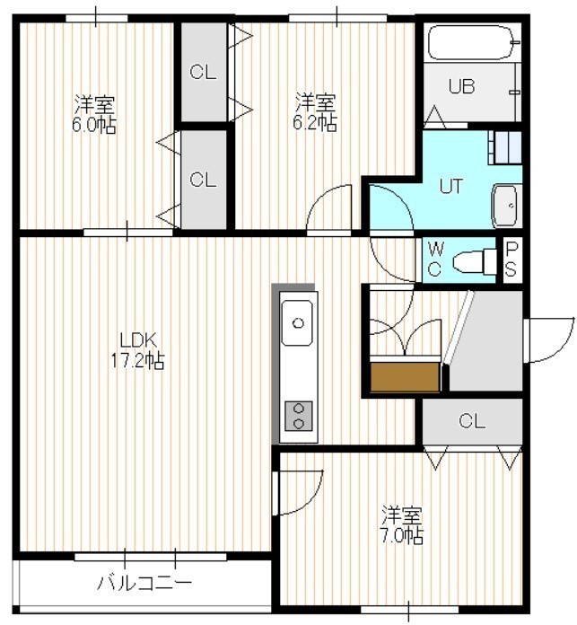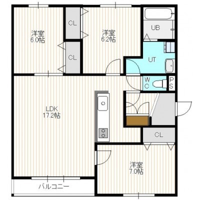 3LDK(78m²)└ 3階:LDK17.2帖 洋室7帖 洋室6.2帖 洋室6帖