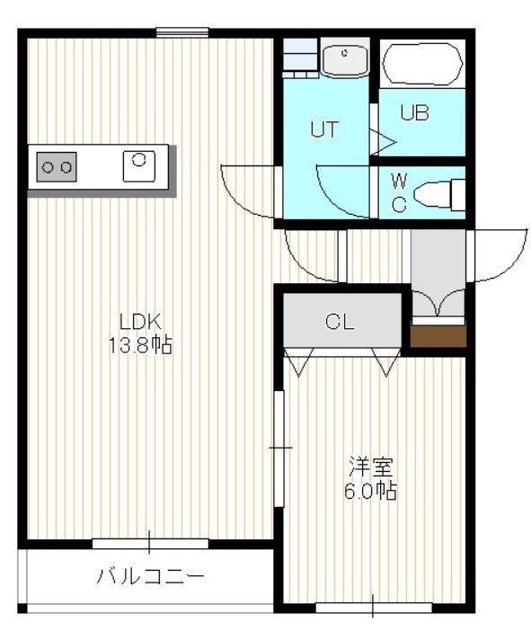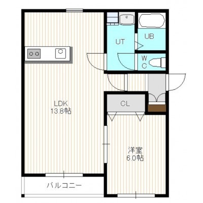 1LDK(44.38m²)└ 4階:LDK13.8帖 洋室6帖