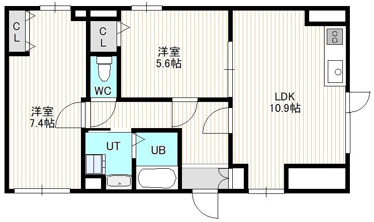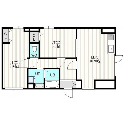 2LDK(55.65m²)└ 7階:LDK10.9帖 洋室7.4帖 洋室5.6帖
