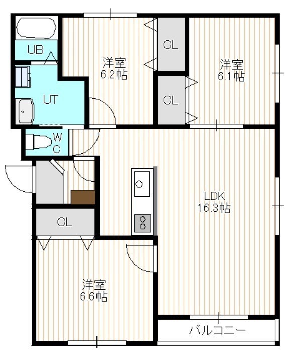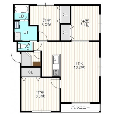 3LDK(78.63m²)└ 4階:LDK16.5帖 洋室6.1帖 洋室6.2帖 洋室6.6帖