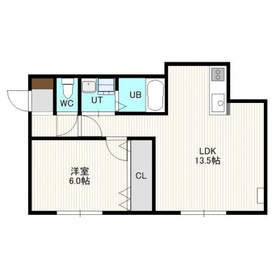 1LDK(45.55m²)└ 2階:LDK13.5帖 洋室6帖