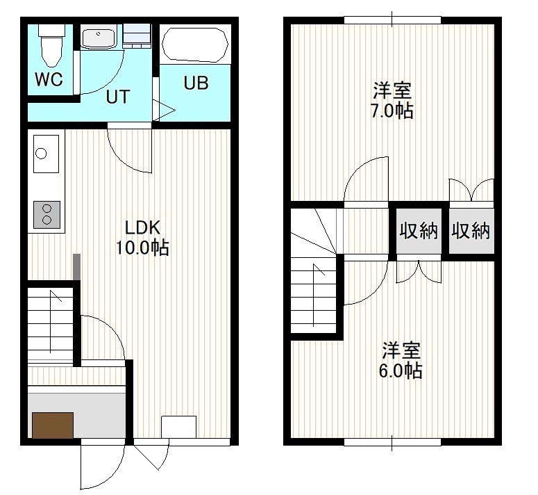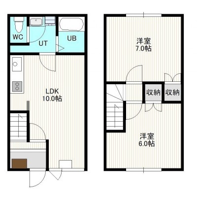 2LDK(52.89m²)└ 1階:LDK10帖 / 2階:洋室7帖 洋室6帖
