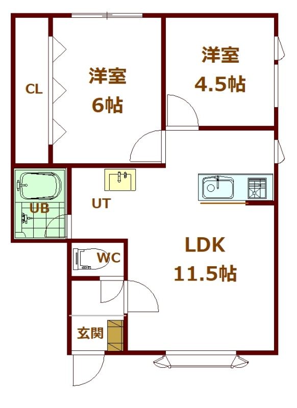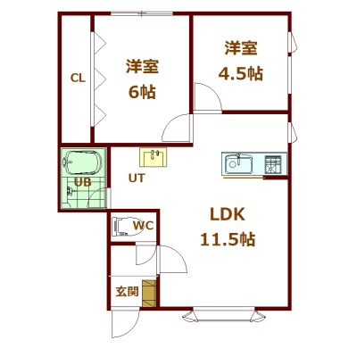 2LDK(48.35m²)└ 1階:LDK11.5帖 洋室6帖 洋室4.5帖