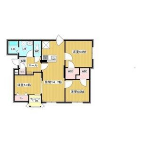 3LDK(74.42m²)└ LDK14.7/洋室6.8/洋室5.5/洋室5.3