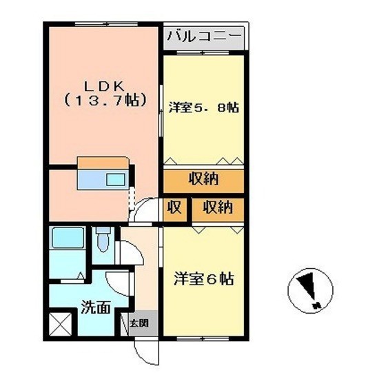 2LDK(57.19m²)└ LDK13.7/洋室6/洋室5.8