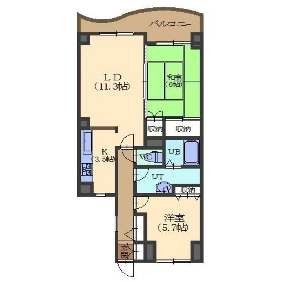 2LDK(61.92m²)└ LD11.3/K3.5/洋室5.7/和室6
