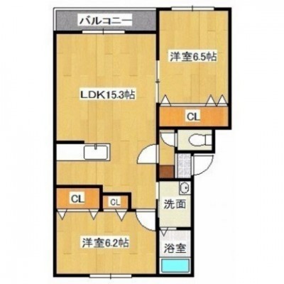 2LDK(65.46m²)└ LDK15.3/洋室6.5/洋室6.2