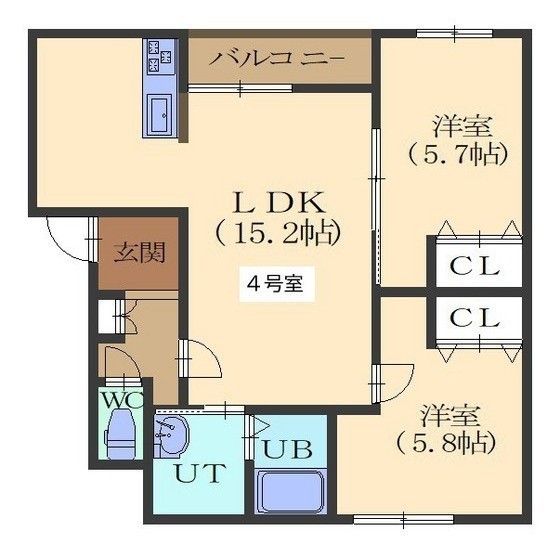 2LDK(59.22m²)└ LDK15.2/洋室5.7/洋室5.8