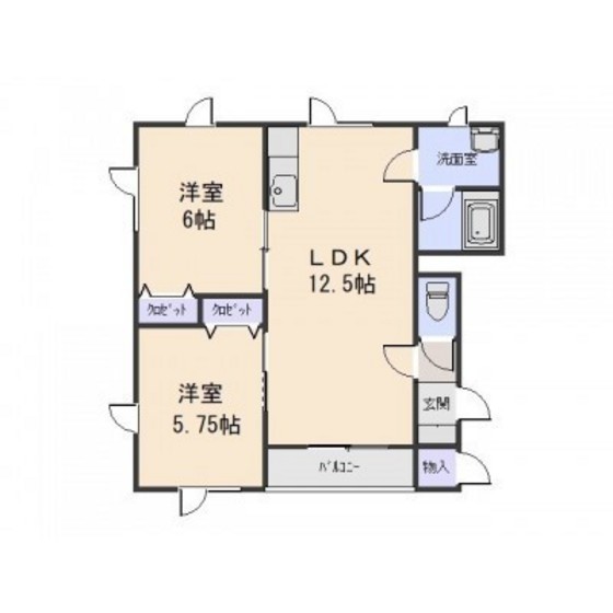 2LDK(55.17m²)└ LDK12.5/洋室6/洋室5.75