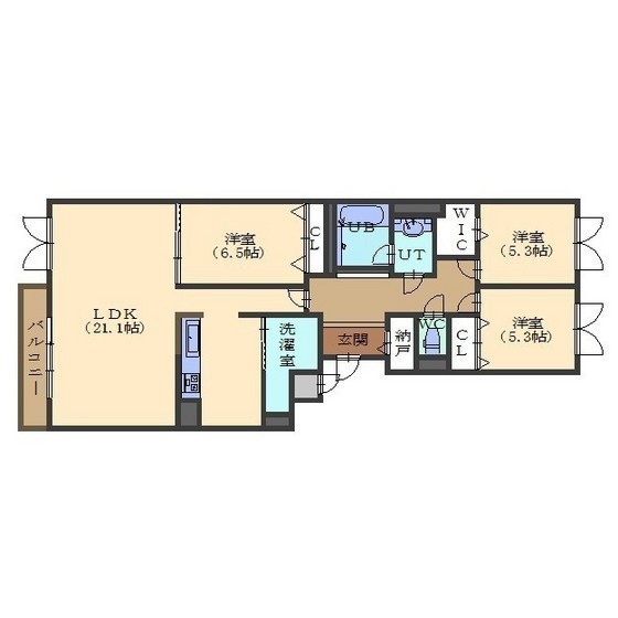 3LDK(142.52m²)└ LDK21.1/洋室6.5/洋室5.3/洋室5.3