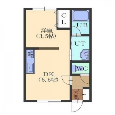 1DK(25.4m²)└ DK6.5/洋室3.5