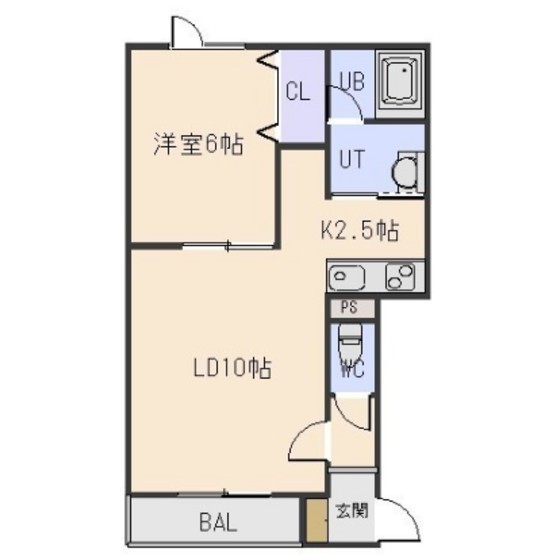 1LDK(42.93m²)└ LD10/K2.5/洋室6