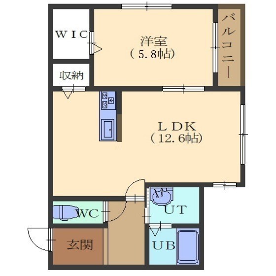 1LDK(45.36m²)└ LDK12.6/洋室5.8