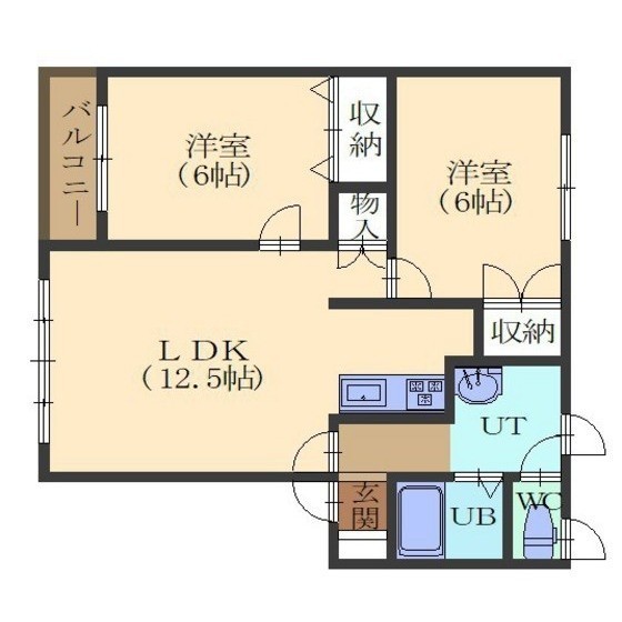 2LDK(54.69m²)└ LDK12.5/洋室6/洋室6
