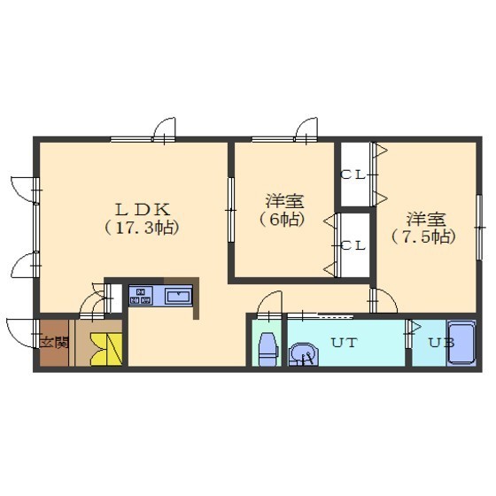 2LDK(69.83m²)└ LDK17.3/洋室7.5/洋室6