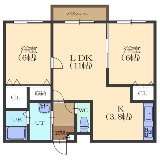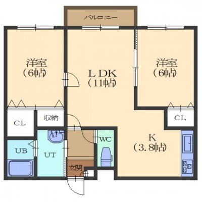 2LDK(55.32m²)└ LD11/K3.8/洋室6/洋室6