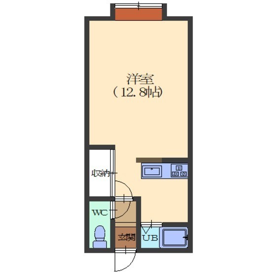 ワンルーム(27m²)└ 洋室12.8