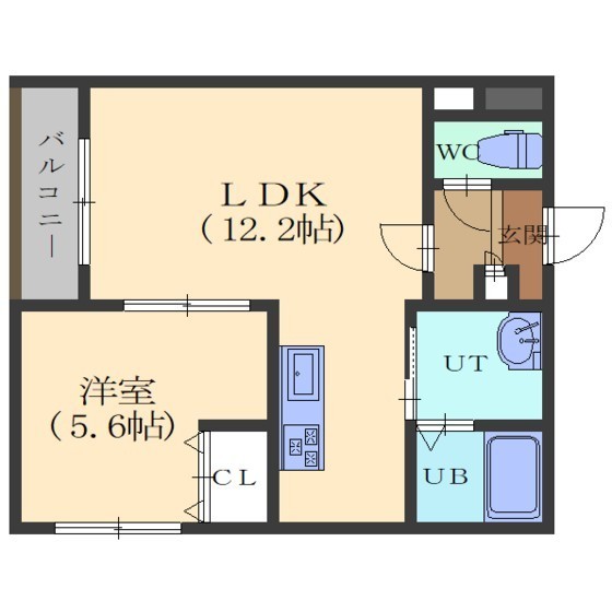 1LDK(42.62m²)└ LDK12.2/洋室5.6