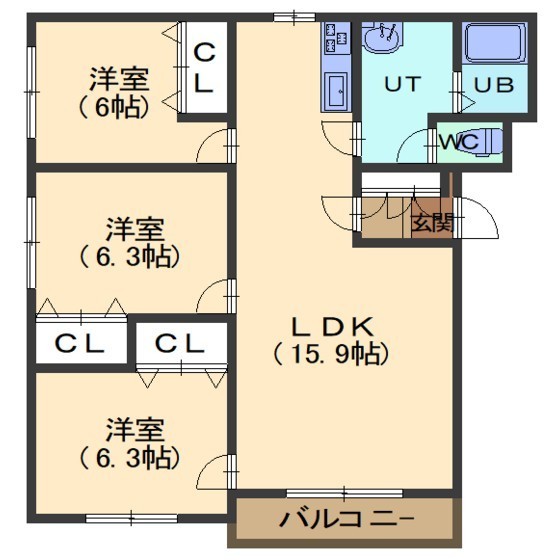 3LDK(71.6m²)└ LDK15.9/洋室6.3/洋室6.3/洋室6