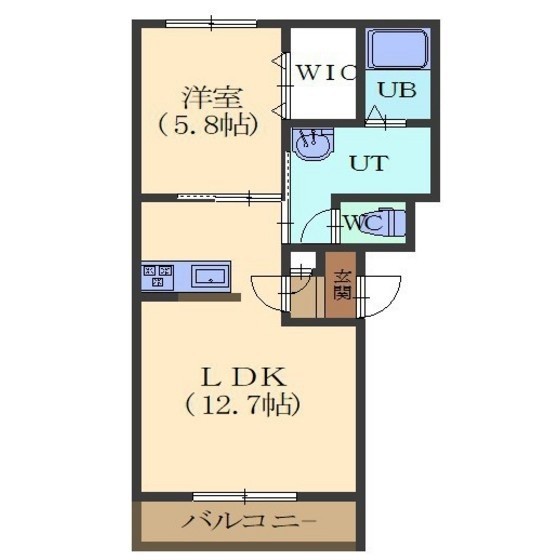 1LDK(43.44m²)└ LDK12.7/洋室5.8