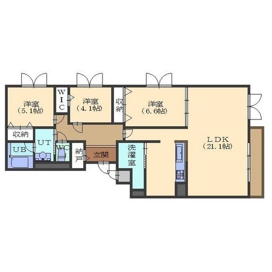 3LDK(108.91m²)└ LDK21.1/洋室6.6/洋室4.1/洋室5.1