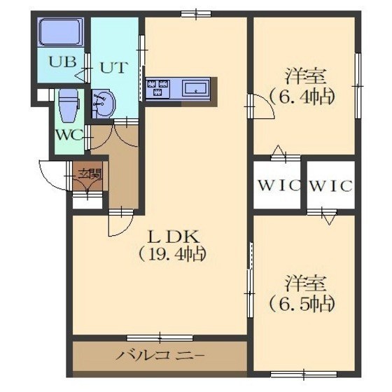 2LDK(69.3m²)└ LDK19/洋室6.4/洋室6.5