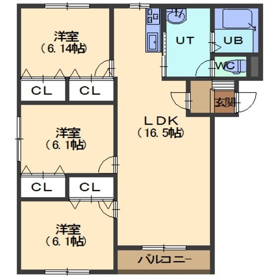 3LDK(75.13m²)└ LDK16.3/洋室6.14/洋室6.1/洋室6.1