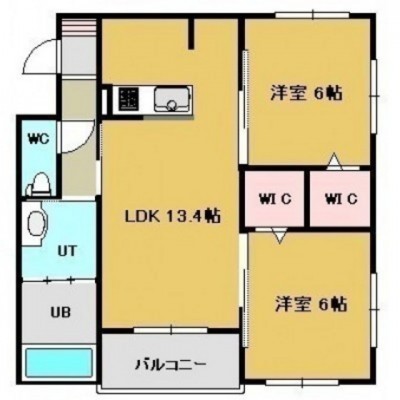2LDK(61.2m²)└ LDK13.4/洋室6/洋室6