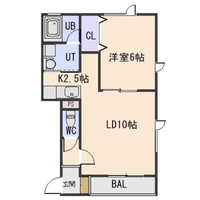 1LDK(42.93m²)└ LD10帖 洋室6帖 K2.5帖