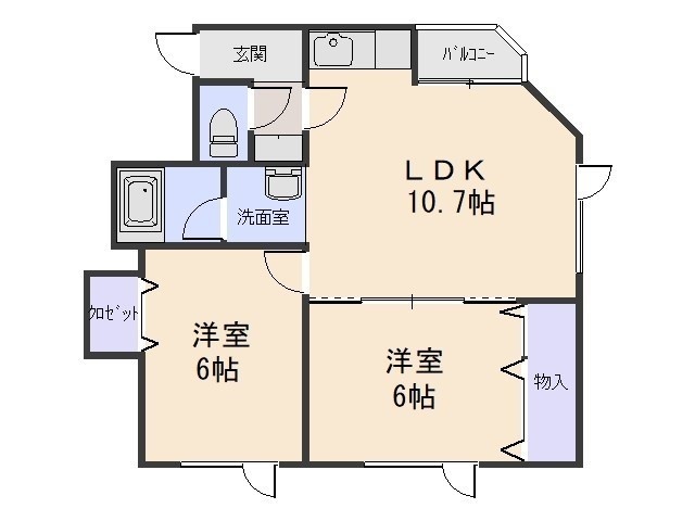 2LDK└ LDK10.7帖 洋室6帖 洋室6帖