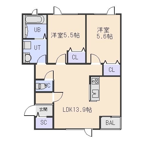 2LDK(56.02m²)└ LDK13.9帖 洋室5.6帖 洋室5.5帖