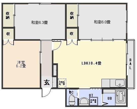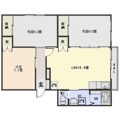 3LDK(56.85m²)└ LDK10.4帖 洋室6.2帖 和室6.3帖 和室6帖