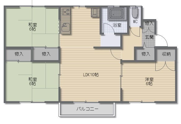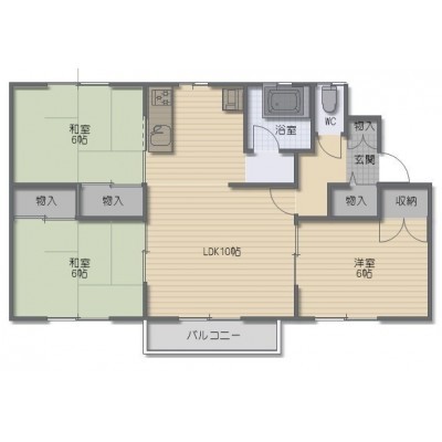 3LDK(70m²)└ LDK10帖 洋室6帖 和室6帖 和室6帖