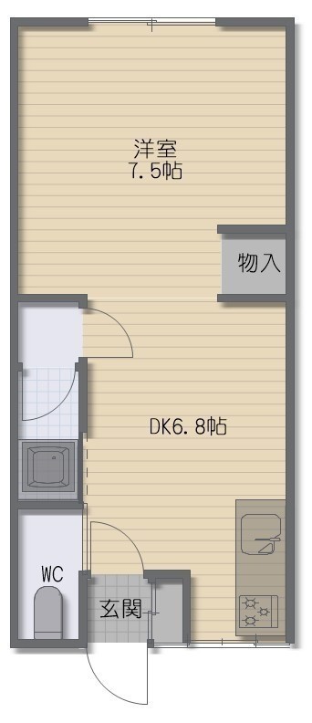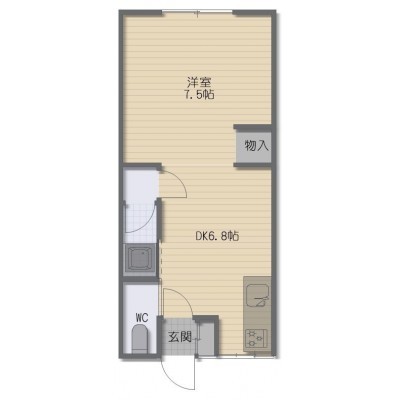1DK(24.22m²)└ DK6.8帖 洋室7.5帖