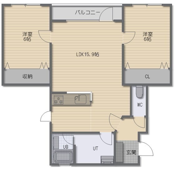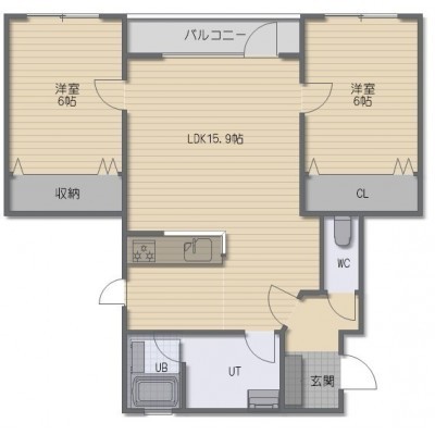 2LDK(55.37m²)└ LDK15.9帖 洋室6帖 洋室6帖