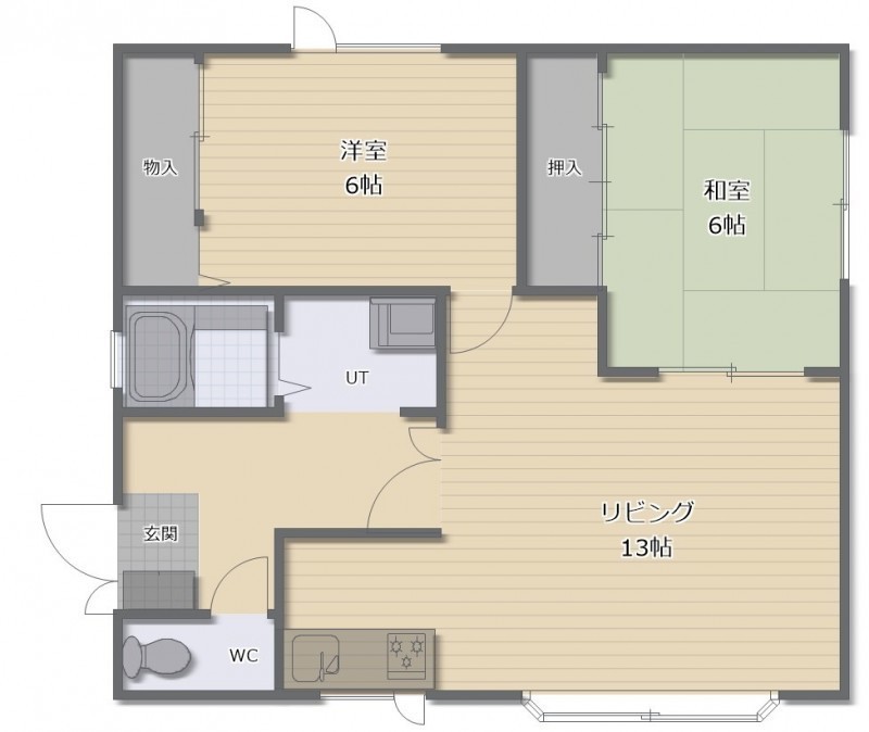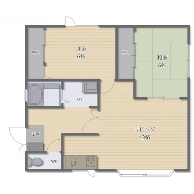 2LDK(57.02m²)└ LDK13帖 洋室6帖 和室6帖